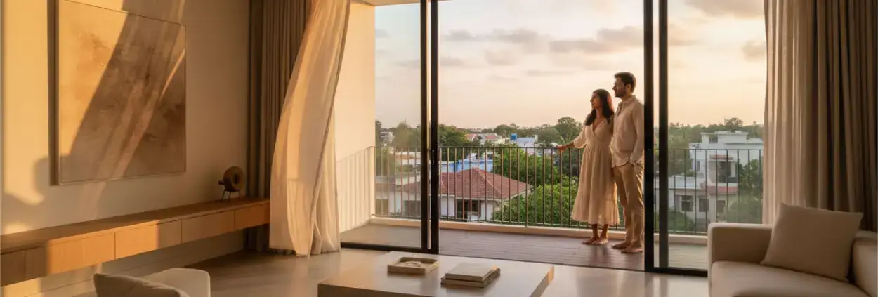 If your living room faces a scenic view, go bold. Using tall openings with aluminium and glass doors creates a wall of light that expands visual volume and gives a luxurious finish.